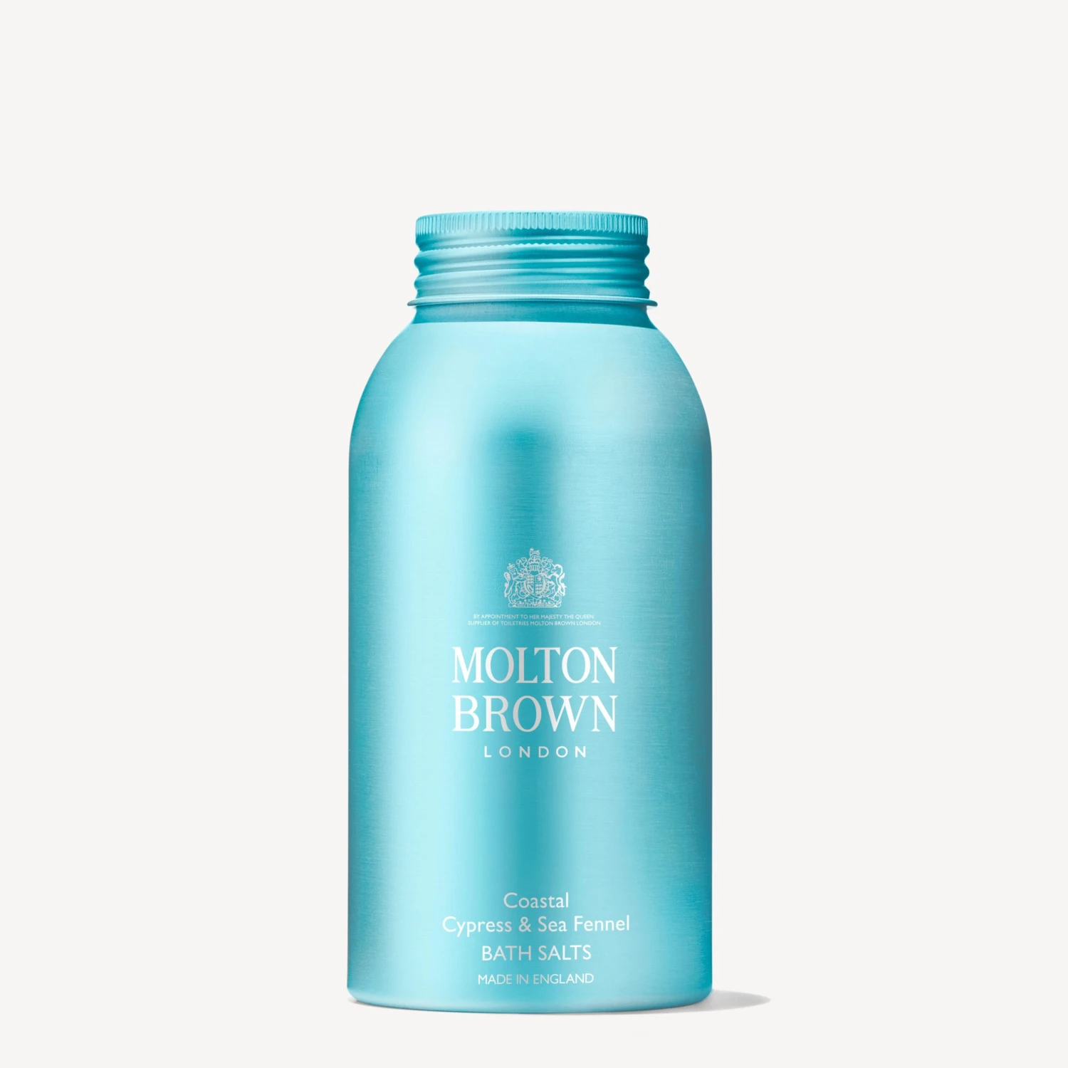 Elevate bathing rituals with two (or more) capfuls of our Coastal Cypress & Sea Fennel Bath Salts; subtly scented with notes of fig leaves, bergamot, marine notes and salted cypress. Housed in a recyclable aluminium bottle.