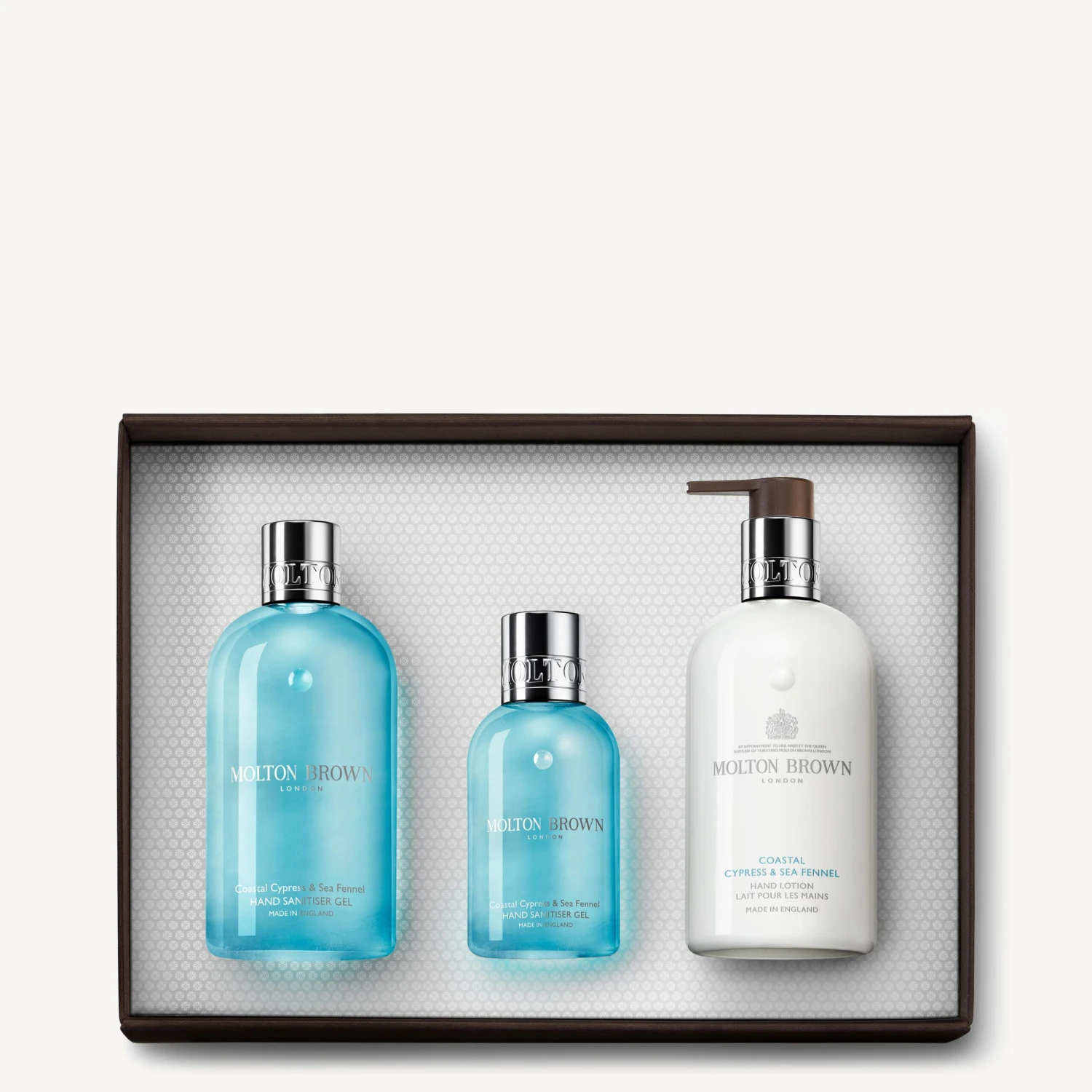 Keep on top of good hand hygiene and care with this three-piece gift set. Our non-drying Hand Sanitiser Gel is awash with our iconic marine fragrance and kills 99.9% of bacteria and enveloped viruses, while the Hand Lotion is infused with shea butter to seal in moisture.