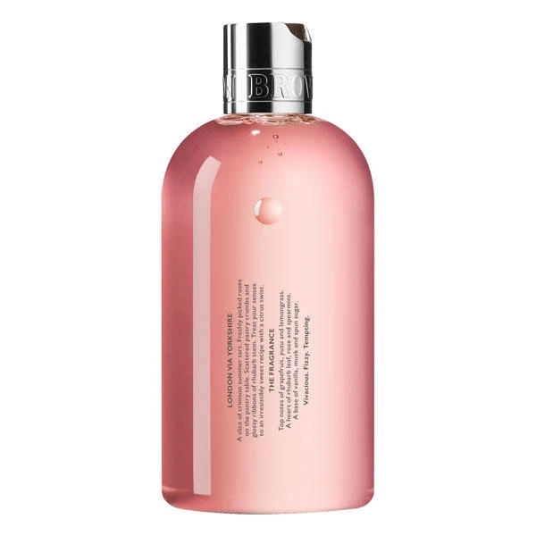 MOLTON BROWNS parfum le plus fin. Ce luxueux gel douche est une spécialité incontournable à base de feuille de rhubarbe et de rose avec un pamplemousse intensif.