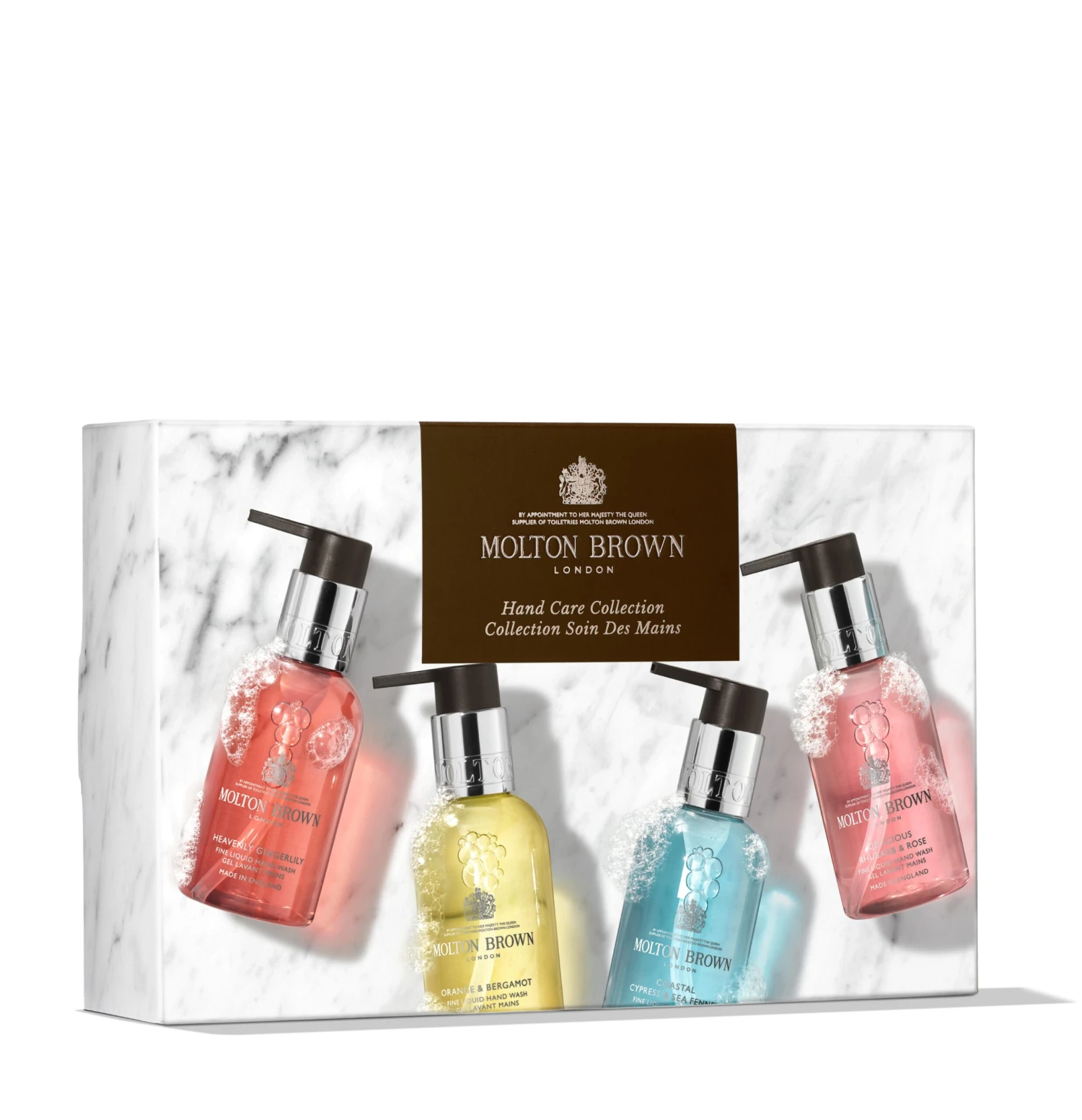 Always have your Molton Brown cleansing essentials with you; pack our quartet of flight-friendly luxury hand washes, filled with our refreshing aromatic and tempting fruity-floral fragrances.