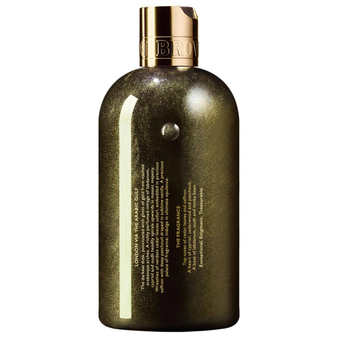 Le crépuscule le plus sombre, interrompu par les reflets dorés d’arcs d’arabesques bombées. Un mirage richement parfumé de labdanum, de cypriol et de oud s’enroule vers le haut en une majesté mosaïque. Des couronnes de feuilles de cèdre vert se déploient, noyées dans le safran précieux et le patchouli profond, enveloppées de vanille sublime. Un palais de parfums précieux – se délecter de l’opulence ultime. Extraordinairement bien. Mystérieux et mystérieux. Précieux.