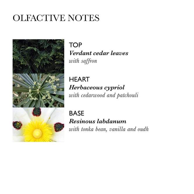 Des notes de tête de feuilles de cèdre et de safran.