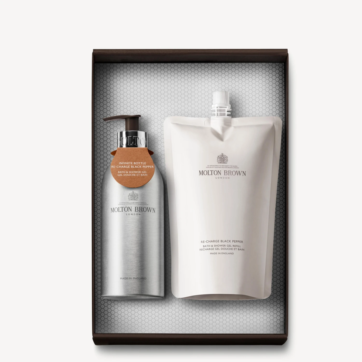 The perfect gift for the conscious-minded; discover our sustainable, sophisticated Infinite Bottle and waste-reducing Refill pouch for Bath & Shower Gel; invigorate their senses with our iconic fragrance of piquant black pepper, spicy coriander and earthy vetiver.