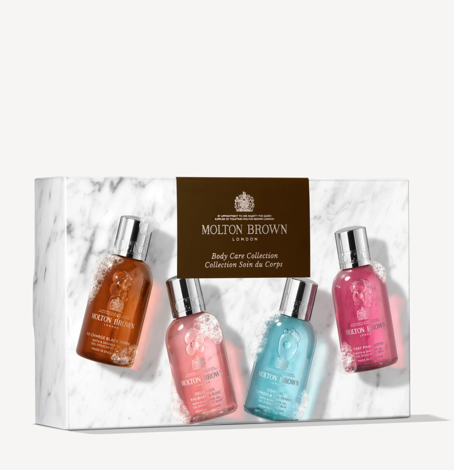Elevate your travel bathing ritual with our iconic quartet of reassuringly warm and freshly blooming body washes, carefully chosen to revive the senses from sunrise to sunset.